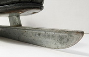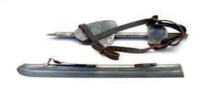 around 1950 ![]() Very low metal ice skates of the Norwegian model with riveted straps. These skates represent more or less a transition from 'wooden' Norwegian type Friesland speed skates to 'metal' ones with platforms welded directly to the tubes (see detail 1a) . They had the disadvantage of slipping sideways when the platforms touches the ice surface when pushing off. Manufacturer: L. Planting & Zonen, IJlst; mark: De Valk, IJlst (see detail 1b) Technical details: total length 44 cm; height over ice 3.5 cm; platforms: 29 cm long, 7.5 cm wide; runner blades: 12 mm tall, 1.5 mm thick; weight 370 g Fig.2: Dutch speed skates, around 1950 ![]() Low metal ice skates of the Norwegian model with riveted boots. Here no tubes that hold the blades but runner blades from T-profiled aluminium (see detail 2a). Manufacturer: L. Planting & Zonen, IJlst; mark: NSA, Akkrum; model Meteor Junior (see details 2b, 2c and 2d) Technical data: total length: 35 cm; height over ice: 5.5 cm; platforms: 25 long, 6 cm wide; runner blades: 22 mm tall, 1 mm thick; weight: 590 g including boot Fig.3: Dutch speed skates, around 2000 ![]() These skates represent the use of modern materials and production methods. The blades are fixed in plastic platforms on which modern plastic boots are mounted. Skates with plastic platforms and riveted boots. Supplier: Zandstra, Joure; mark: see photo above Technical details: total length: 46 cm; height over ice: 5.5 cm; platforms: 29 cm long, 8 cm wide; runner blades: 17 mm tall, 1.5 mm thick; weight: 800 g including boot |