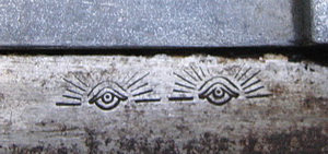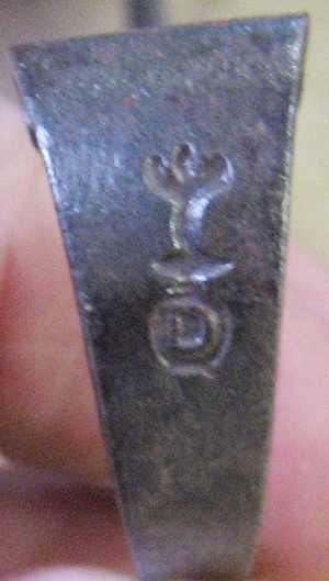 D - Unclear mark of unknown blacksmith on curled-up blades, c. 1800